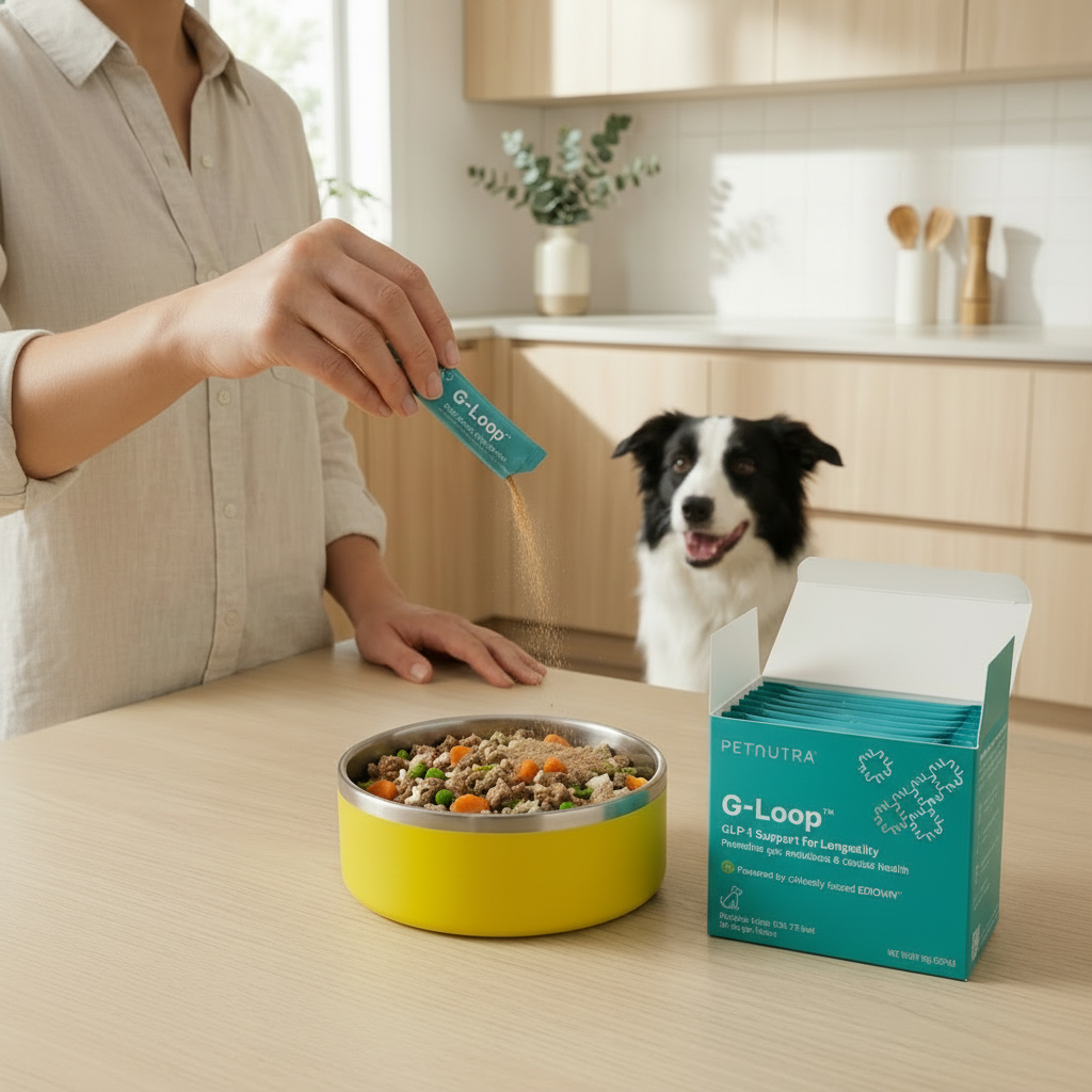 G-Loop™ is the only pet supplement powered by ERIOMIN®, a patented citrus bioflavonoid that supports GLP-1 activity — a natural hormone made in the gut that plays a key role in metabolic, gut, and cellular function. The formula also includes a blend of pre-, pro-, and postbiotics, along with antioxidants and other nutrients that support multiple systems working together.
