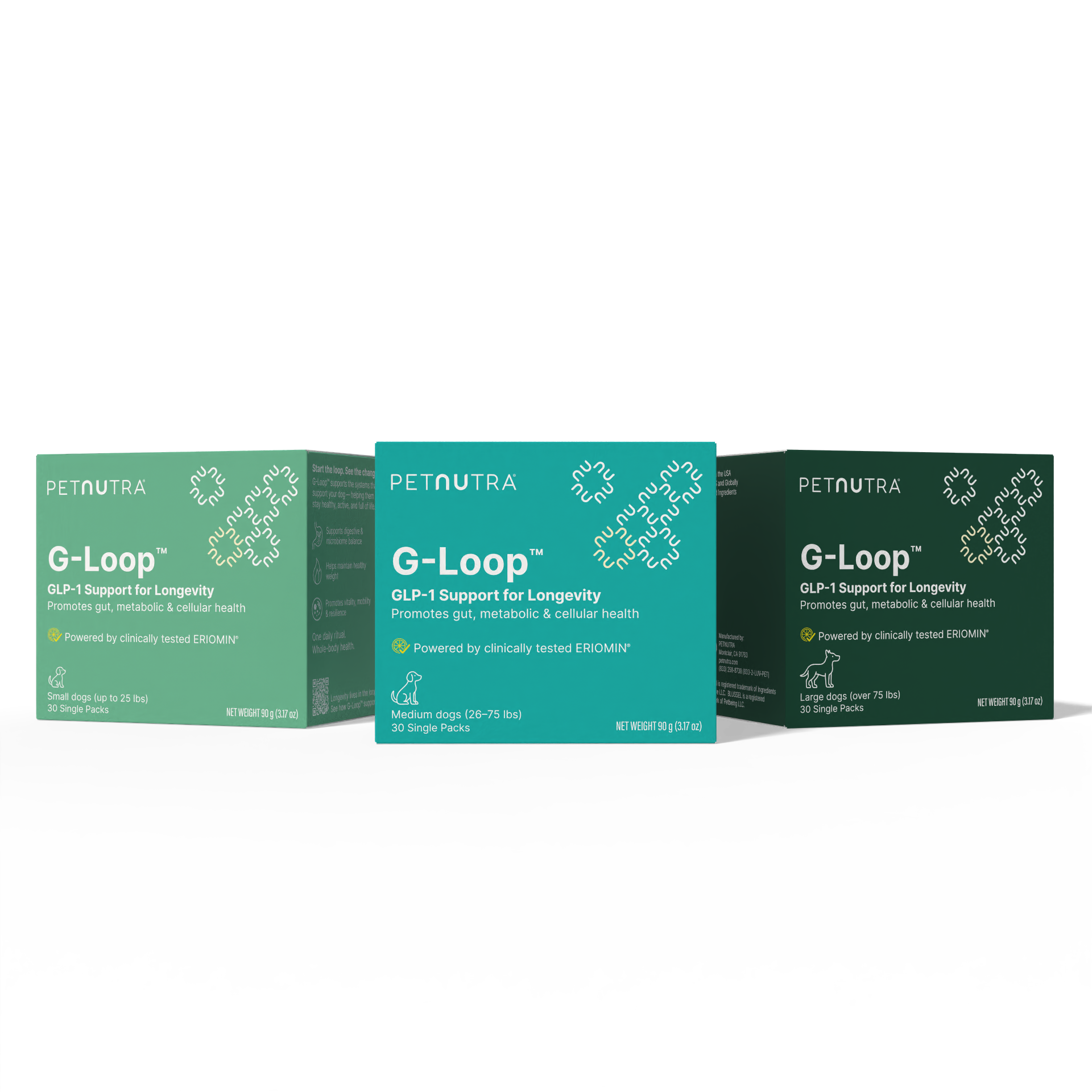 G-Loop is the first daily supplement made for pets to support this loop of longevity, with clean, clinically studied ingredients in one precise stick pack.