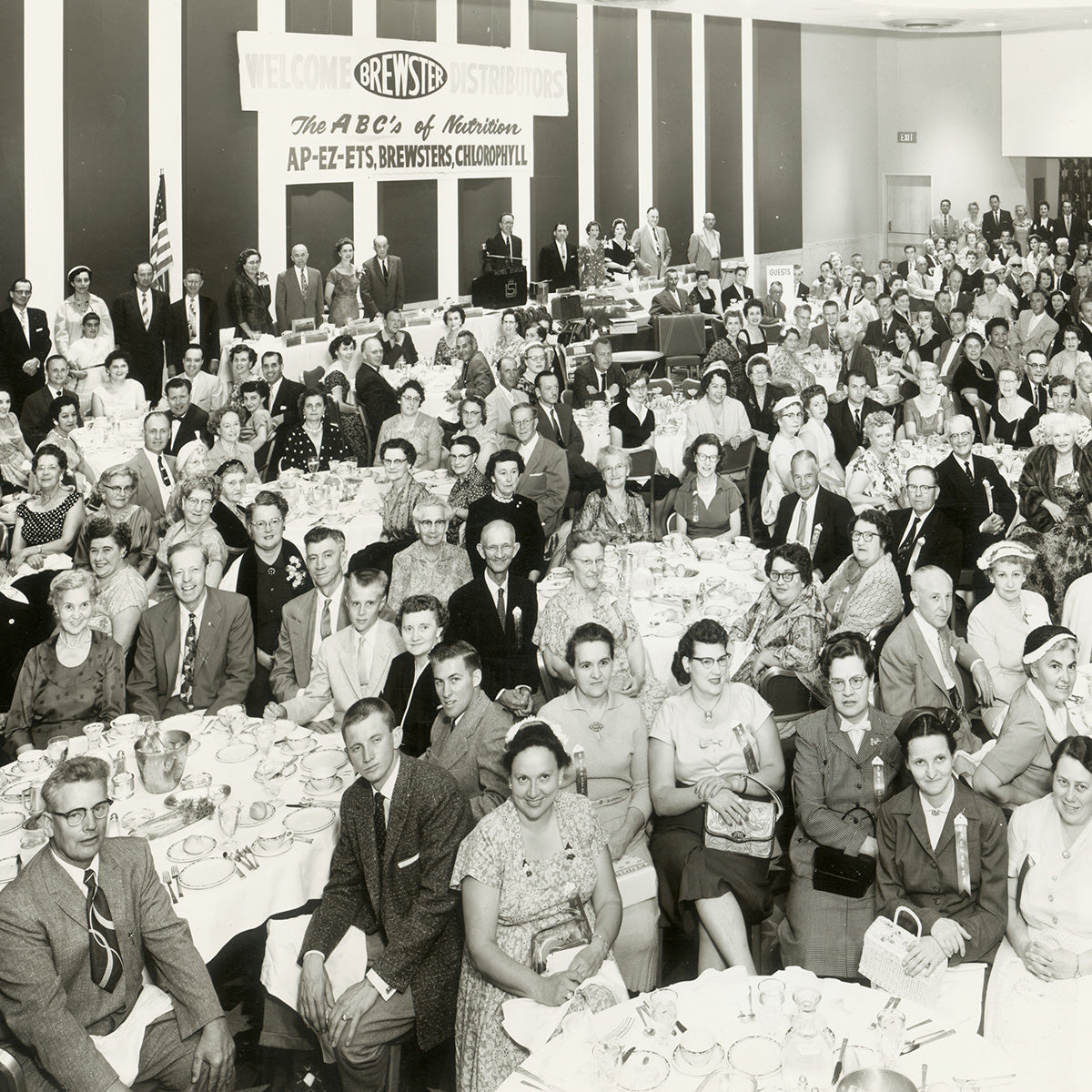 Marshall Brewster, Rob’s grandfather, takes full ownership and renames it Brewster Nutrition. He becomes one of the first to work with citrus bioflavonoids — and travels the country teaching the “ABCs of Nutrition” in living rooms and community halls. His early supplement company was one of the first MLMs in the U.S.